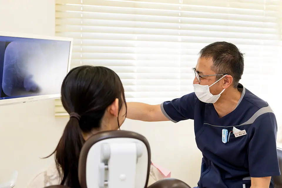 当院では、歯や歯ぐきの状態を丁寧に確認し、必要に応じてレントゲンで見えない部分もチェックします。