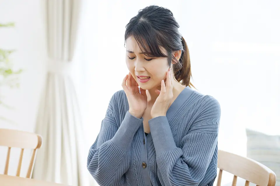 症状が進むと顎の腫れや発熱、口が開きにくいといった不快な症状を伴うこともあります。